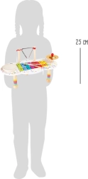 A SMALL FOOT fa zenélő asztalka ideális az első zenei kísérletekhez. Masszív felépítésének, áttekinthető elrendezésének és a természetes fa színes elemekkel való tetszetős kombinációjának köszönhetően a gyerekeket a hangok és ritmusok felfedezésére ösztönzi. A hangszerek könnyen hozzáférhetők és a gyermekkezekhez igazodnak.