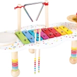 Az asztalka négy kedvelt hangkeltő elemet tartalmaz – színes billentyűs xilofont, dobot, triangulumot és cint. A játék támogatja a kéz-szem koordinációt, a koncentrációt és a hallási figyelmet. Játékos bevezetés a zene világába, amely serkenti a fantáziát és az önálló játékot.