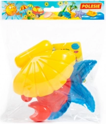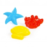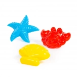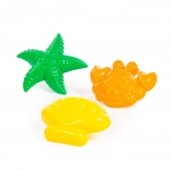 A készlet 3 darab, kb. 13 cm-es formát tartalmaz, amelyek a tartós műanyagnak és a könnyű tisztításnak köszönhetően ideálisak a mindennapos homokozós játékhoz és a tengerparti nyaraláshoz. A praktikus tasakos csomagolás megkönnyíti a szállítást és a tárolást.