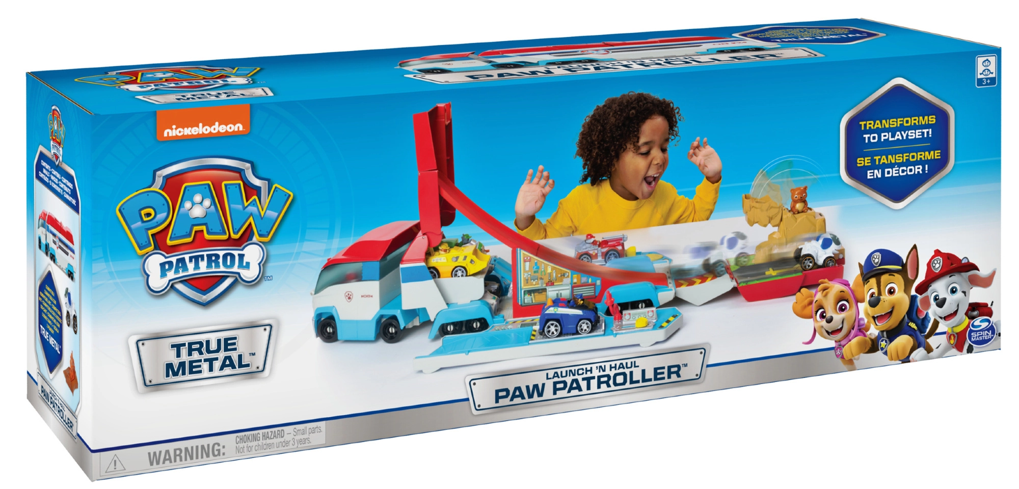 A Spin Master PAW Patrol sorozatának nagy, átalakuló teherautója pillanatok alatt akciódús játékbázissá alakul rámpával. Autókilövőt, 12 kereket a stabil haladáshoz, valamint mentőküldetéseket kínál, mint a tűzoltás, emelőplatform és a medvementés. Akár 7 fém kisautót (True Metal, külön kaphatók) is befogad, és tartalmaz egy Robotkutyát az azonnali játékhoz.