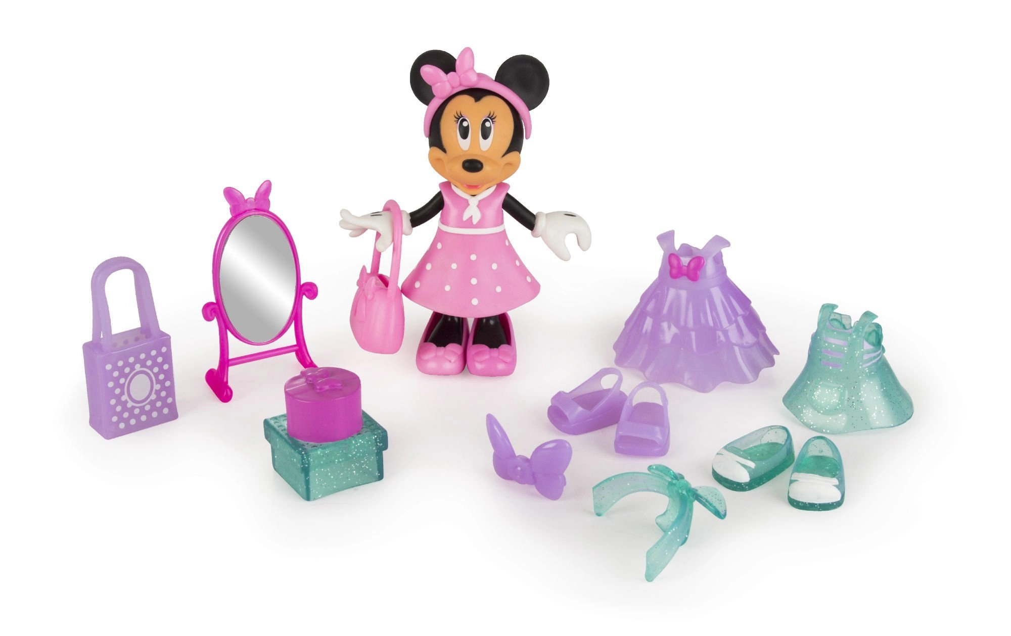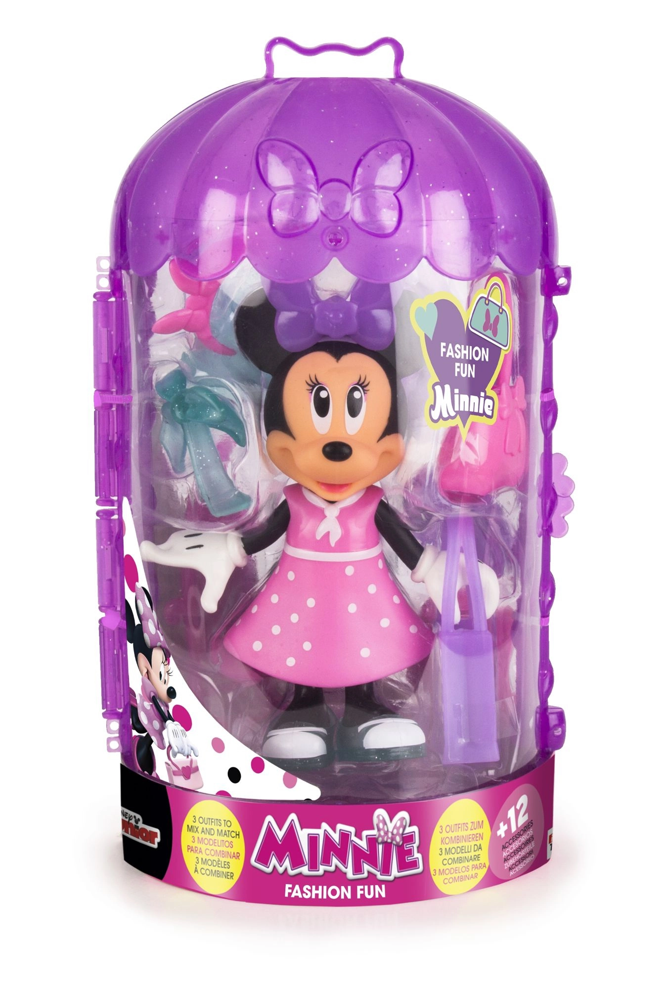 A bájos MINNIE MOUSE baba a DISNEY JUNIOR licencelt sorozatból órákon át tartó kreatív szórakozást kínál. A csomagban 3 különböző ruha, 3 pár cipő és további kiegészítők találhatók a végtelen stíluskombinációkhoz. A könnyű rögzítésnek köszönhetően a baba gyorsan átöltöztethető, a szett pedig ideális ajándék 3 éves kortól.