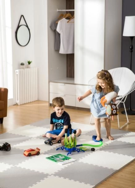 Vízálló EVA ftalátok, formamid, PVC és BPA nélkül. Elég áttörölni nedves ruhával – higiénikus megoldás a gyerekszobába.