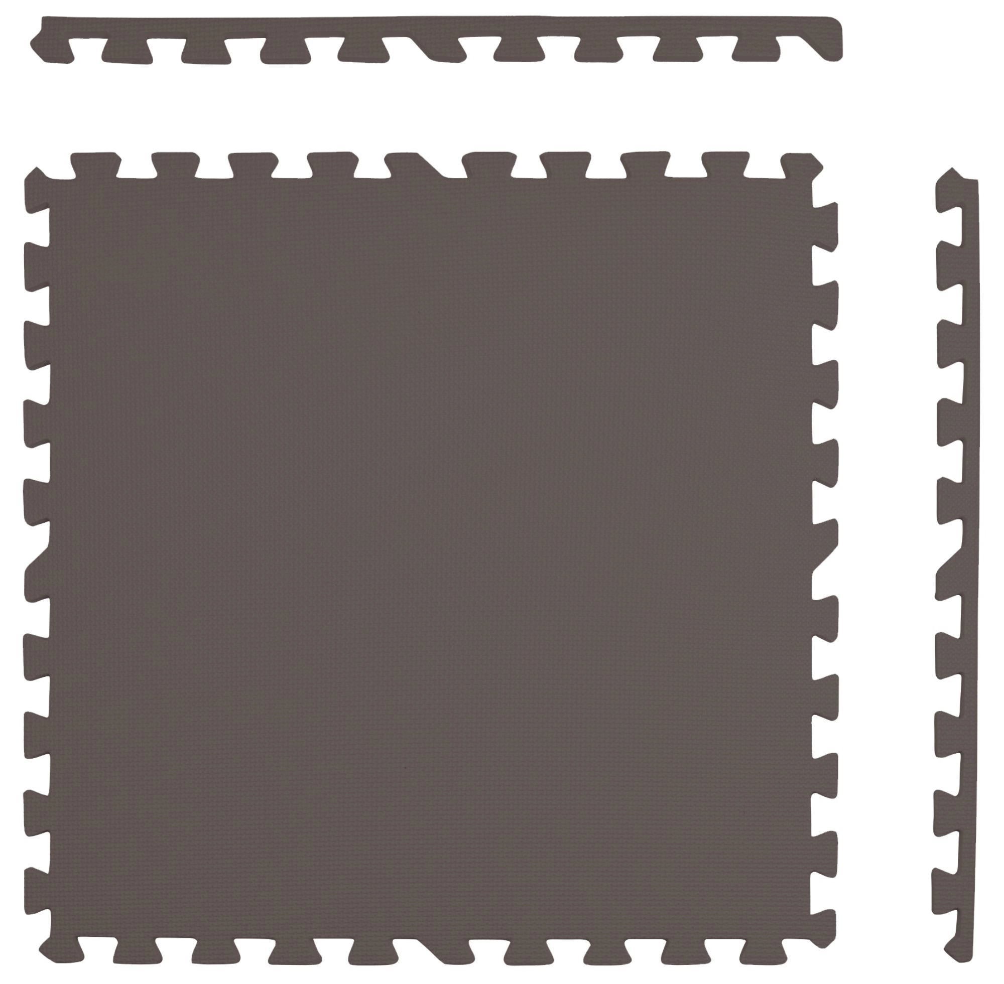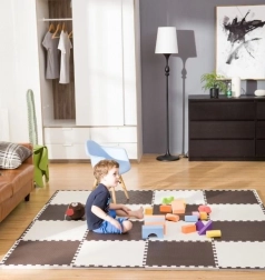 visszafogott barna színben, ideális parkettára, járólapra és laminátra. Az 1 cm-es vastagságnak köszönhetően kiválóan szigetel és elnyeli az ütéseket. A két nagy elem és a 4 perem könnyen egy kompakt felületté illeszthető, illetve azonos modellű készletekkel nagyobb játszóterületté bővíthető.