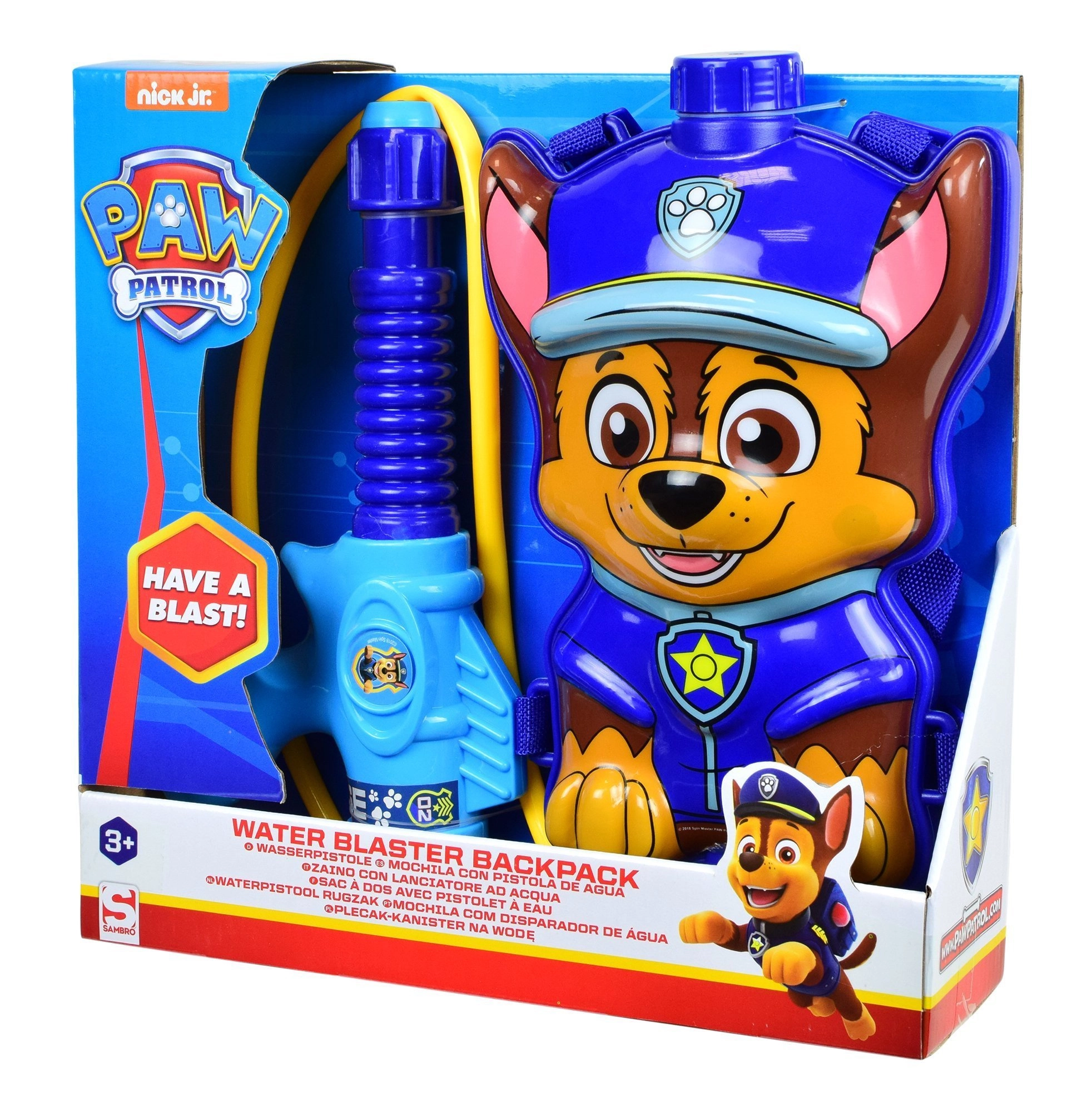 Ez a gyerek vízestáska a kedvelt hős, Chase alakjában a Mancs őrjárat meséből minden napsütéses napot vagány vízi csatává varázsol. A tartályt vízzel a zárható töltőnyíláson át lehet feltölteni, majd a cső és a kézi pumpa segítségével vízsugarat lehet kilőni. Az állítható pántoknak köszönhetően a hátizsák kényelmesen illeszkedik különböző magasságú gyerekekre.