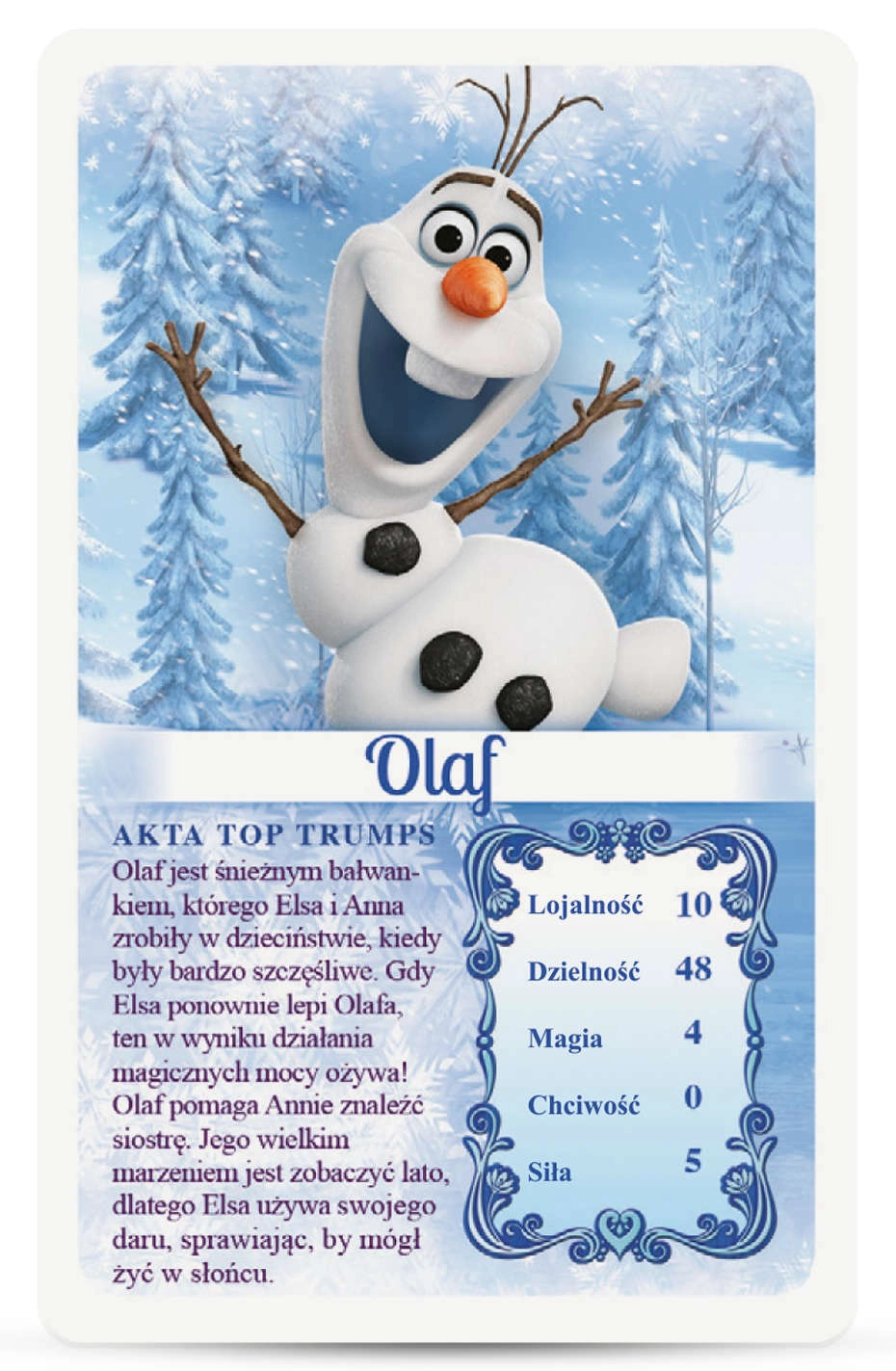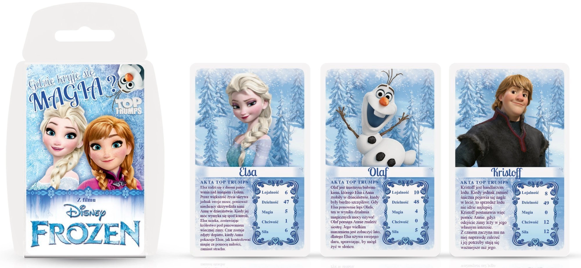 A Top Trumps egy közkedvelt kártyajáték, amely évtizedek óta szórakoztatja a családokat. A Jégvarázs kiadásban a DISNEY népszerű filmjének hőseivel találkozol, és összehasonlíthatod tulajdonságaikat, mint például a mágia, a bátorság vagy a bölcsesség. A cél a jobb érték kiválasztása és az ellenfél kártyáinak megszerzése – az nyer, aki az egész paklit begyűjti.