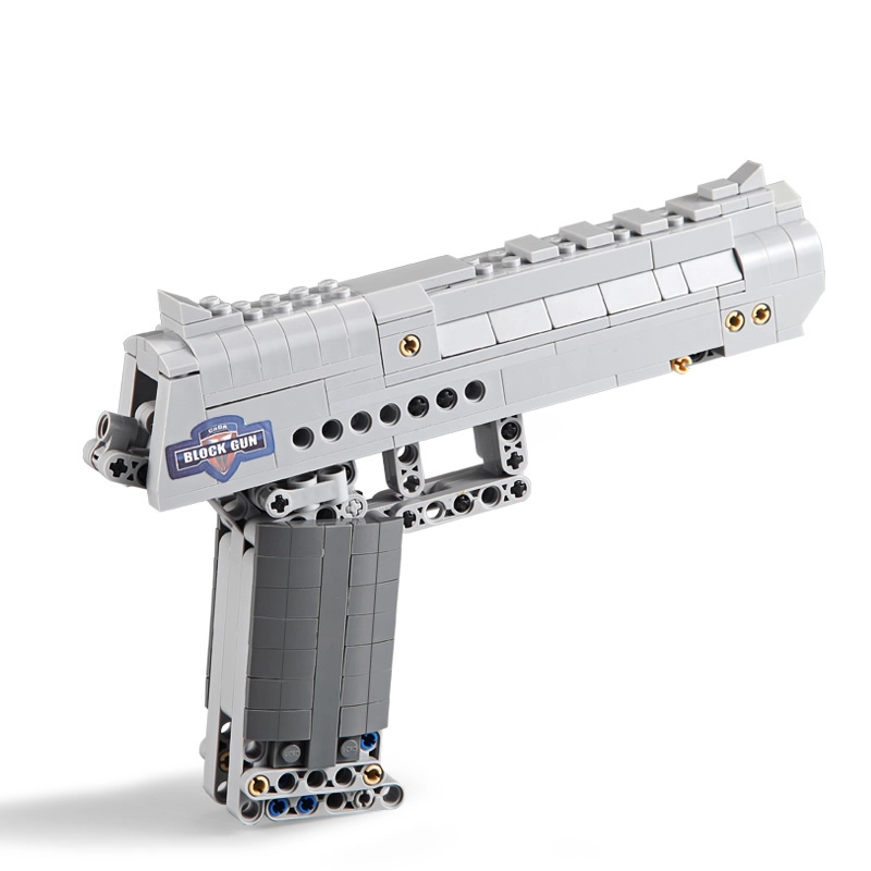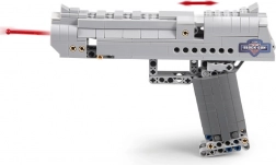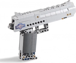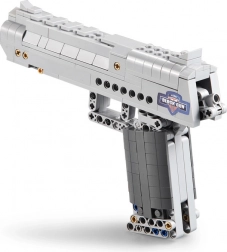 A CADA Desert Eagle Falcon építőkészlet élethűen kidolgozott, ezüst színű pisztolymodellt kínál nagyfokú részletességgel. A technic elemeknek köszönhetően a modell működő elsütőbillentyűvel és mozgó részekkel rendelkezik, amelyek fokozzák az építési és játékélményt. A csomag tartalmaz 5 darab műanyag töltényt biztonságos, lekerekített véggel.