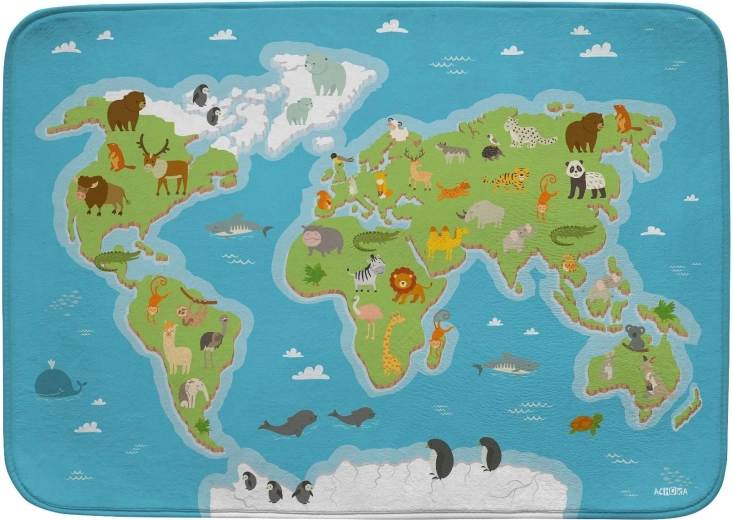 Az Achoka szőnyeg örömöt és tudást hoz a gyerekszobába. A világtérkép állatok természetes élőhelyeikkel ábrázolva felkelti a kíváncsiságot, és játékosan segít felfedezni a kontinenseket. Kivételes puhaságának köszönhetően ideális játékhoz, olvasáshoz és mindennapi pihenéshez.