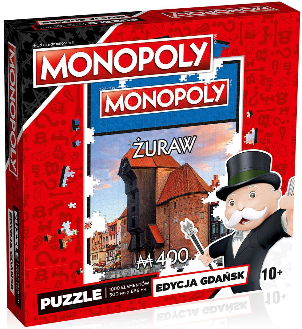 Ez a prémium kirakó a Monopoly kollekcióból a gdanski történelmi Żuraw daru egyedi motívumát hozza el. Az 1000 precízen vágott darabnak köszönhetően hosszú órákon át élvezheti a szórakozást, miközben fejleszti türelmét és logikus gondolkodását. A kész kép elegáns 66,5 × 50 cm formátumú, amely keretezésre is kiváló.