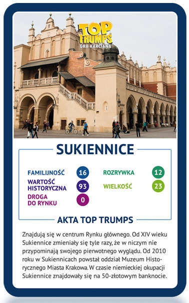 A TOP TRUMPS egy könnyed családi kártyajáték, amely fejleszti az összehasonlítást, a stratégiát és a gyors döntéshozatalt. Minden kártyán 5 különböző, számmal jelölt attribútum található – a játékos választ egy kategóriát, és akinek a legmagasabb értéke van, elviszi az adott kör összes kártyáját. A játék addig tart, amíg egy játékos meg nem szerzi az egész paklit.