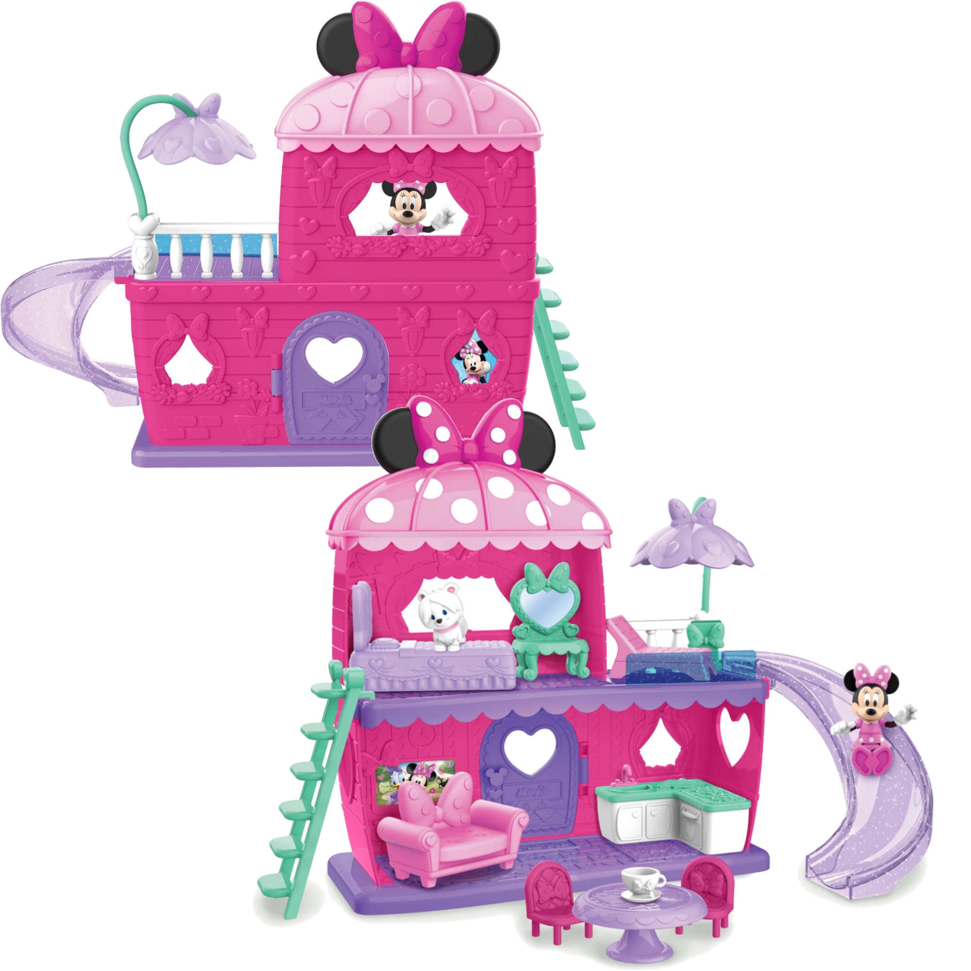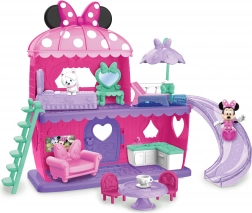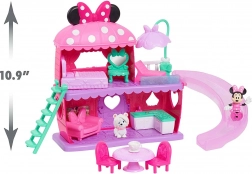 A szett része 2 figura (kb. 7,5 cm magas) és gazdag tartozékok, beleértve a bútorokat. A gyerekek a figurákat lecsúsztathatják a csúszdán, felvihetik a lépcsőn, és újra meg újra átrendezhetik a belsőt. Ideális 3 éves kortól ajándéknak, valamint Minnie-témájú játékkollekció bővítéséhez.