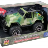 Az 1:16 méretarányú katonai jeep ideális játék a kis kalandoroknak. A lendkerekes meghajtásnak köszönhetően egy egyszerű lökéssel elindul, miközben világító fényekkel és autentikus cseh legénységi hangokkal nyűgöz le, amelyek valósághűbbé teszik a játékot. A strapabíró műanyag kivitel napi játékhoz is megfelelő.