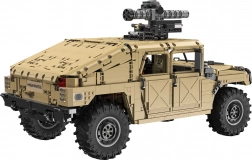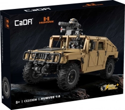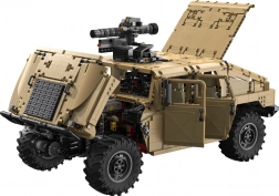 Ez a nagyméretű HUMVEE modell 1:8 méretarányban a haladó építők és a technikai építőkészletek rajongóinak is örömet okoz. A realisztikus részletek közé tartozik a hűtőrács, a motortér, a műszerfal, a kormánykerék, a visszapillantó tükrök, az elöl dupla ülések és az átgondolt csomagtér. A kézi vezérlőtárcsa lehetővé teszi a torony forgatását, a gránátvető indítását és a géppuska forgatását.