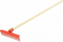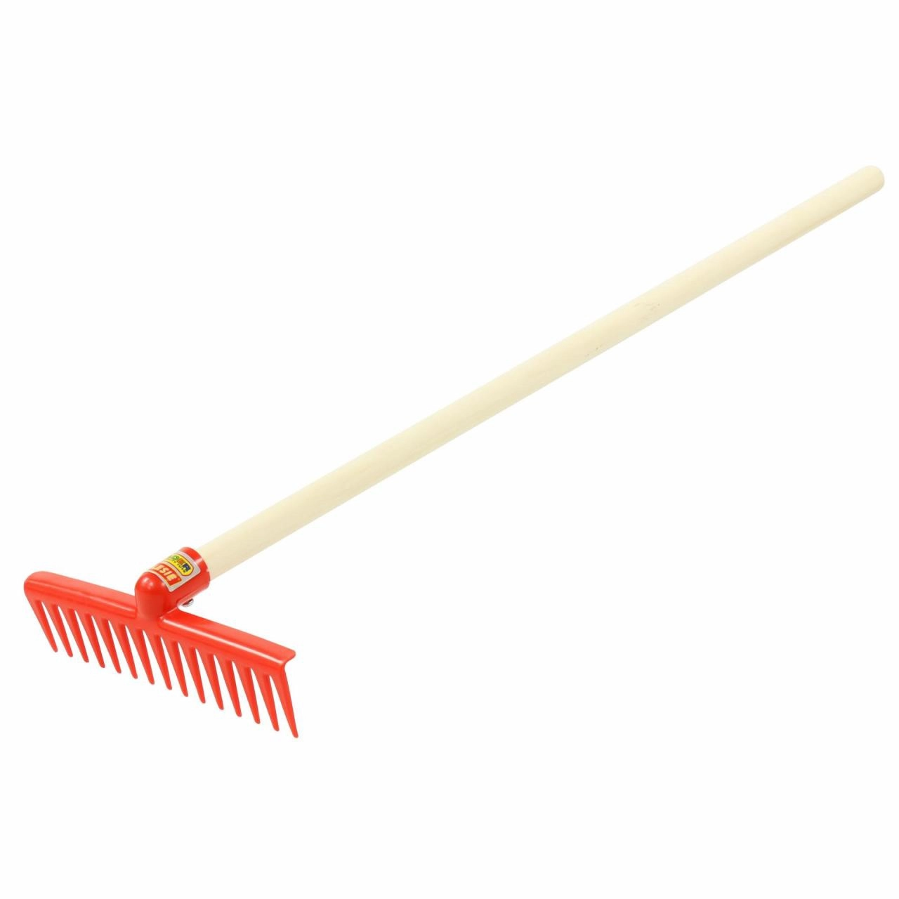 Szerezzen örömet a gyerekeknek a szabadban töltött idővel ezzel a praktikus és könnyű gereblyével, amely remekül illik a kézbe. A hosszú, sima fa nyél és a masszív műanyag fej széles fogakkal megkönnyíti a levelek, a homok és az apró szennyeződések gereblyézését.