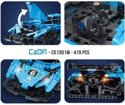 A modell részletre és funkcionalitásra összpontosítva készült: található rajta nyitható hátsó motorburkolat, forgatható kormány és állítható ülés. Az összeépített jármű mérete megközelítőleg 39 × 13,6 × 8,2 cm, és akár 5,5 km/h sebességet ér el. Az elemek kompatibilisek más CaDA készletekkel, így könnyen bővítheted a gyűjteményedet.
