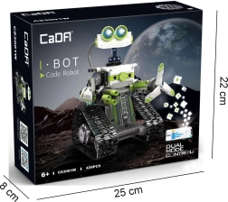 Építsd meg és keltsd életre saját I.BOT robotodat a CaDA márkától. A 434 darabnak és a könnyen használható mobilalkalmazásnak köszönhetően gyerekek és felnőttek egyaránt élvezhetik az építést és a játékot. A robot halad, forgatja a fejét és a végtagjait, világító LED szemei vannak, és a fegyvere 360°-ban forog. Irányíthatod 2,4 GHz-es távirányítóval vagy a Bluetooth alkalmazással, több mint 25 m hatótávval.