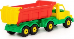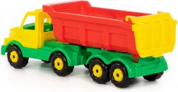 Színes műanyag teherautó pótkocsival, 58 cm hosszban, amely órákig tartó szórakozást nyújt otthon és a homokozóban. Strapabíró felépítéssel, hátrafelé billenthető platóval és mozgatható hátsó fallal a könnyű rakodásért és kirakodásért. Wader quality toys minőségben gyártva a biztonságos és hosszan tartó játékért.