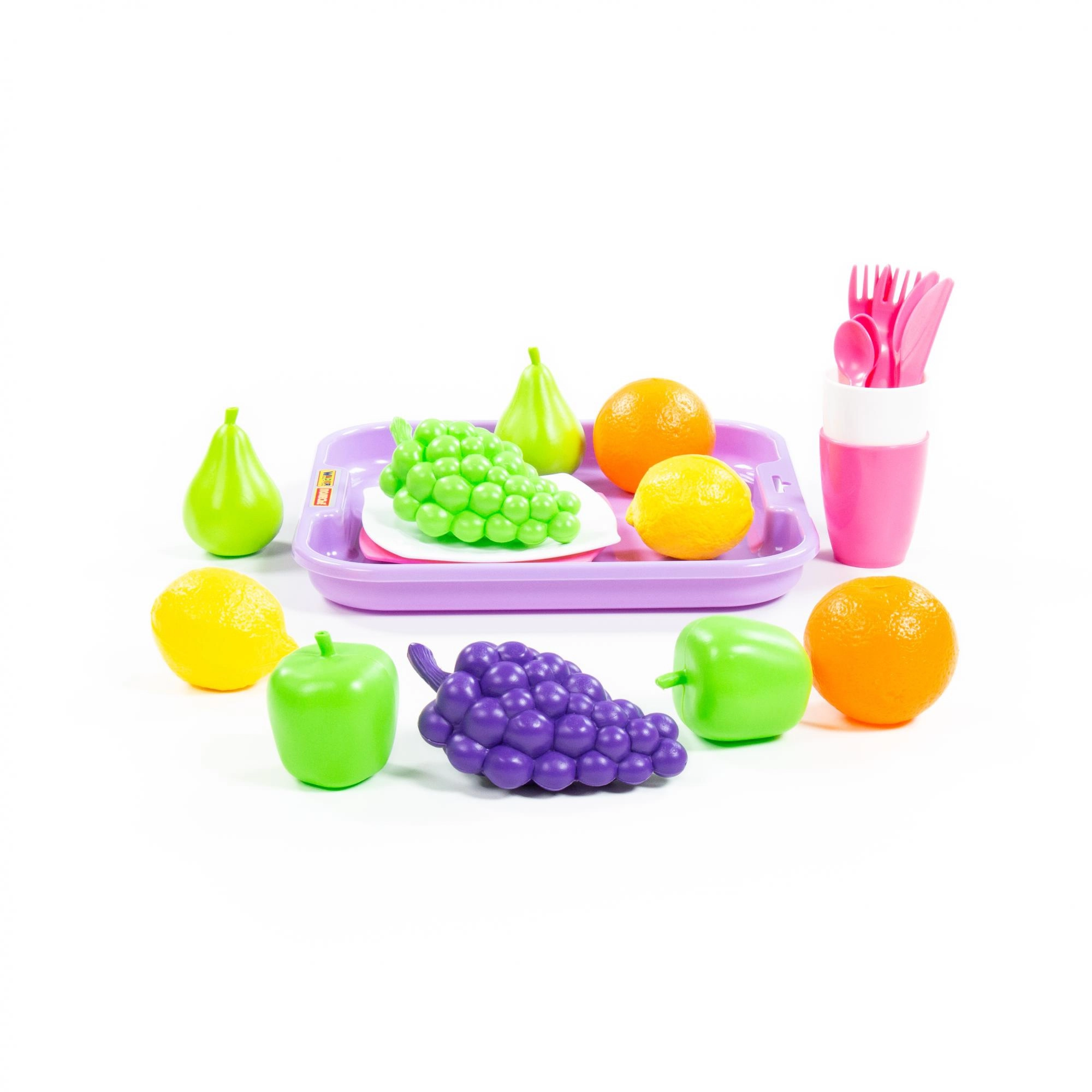 Ez a színes gyümölcskészlet edényekkel örömet szerez minden kis szakácsnak. A gyerekek vághatnak, tálalhatnak és lakomát rendezhetnek a valósághű megjelenésű műanyag gyümölcsdarabokkal. A könnyű, tartós műanyag elemek jól kézbe simulnak, és gyorsan elpakolhatók a mellékelt tálcára.