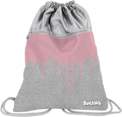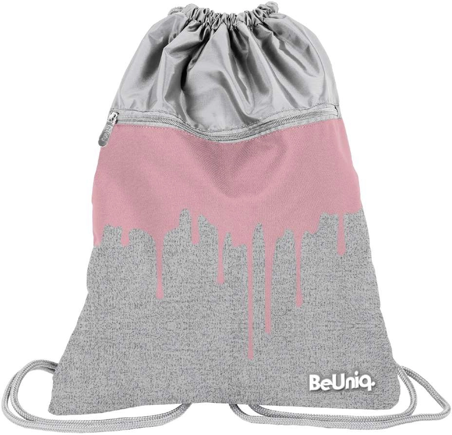 A szürke–rózsaszín drip dizájn a BeUniq logóval ötvözi a modern megjelenést a megerősített háttal és az erős zsinórokkal a kényelmes viselésért.