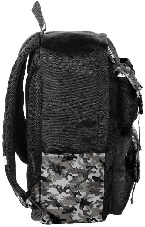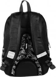 A könnyű, fekete, terepmintás BeUniq Moro iskolatáska a Paso márkától tágas főrekesszel, kényelmes, ergonomikus vállpántokkal és stabilan merevített, légáteresztő hátfallal rendelkezik. A fényvisszaverő elemeknek köszönhetően biztonságos az iskolába vezető úton, az oldalsó palacktartó zsebek és az elülső cipzáras zsebek pedig gondoskodnak a tökéletes rendszerezettségről. Tartós, vízálló poliészterből készült, és alkalmas A4 formátumhoz.