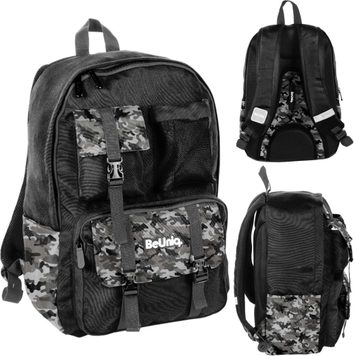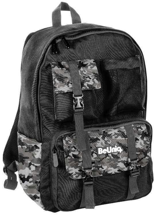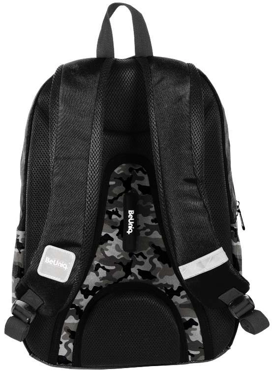 Megbízható, mindennapi iskolatáskát keres? A BeUniq Moro ötvözi a modern terepmintás dizájnt és a funkcionalitást: egy nagy rekesz tankönyvekhez és A4-es füzetekhez, három elülső cipzáras zseb apróságoknak, valamint két oldalsó, anyagból készült palacktartó zseb. A merevített, anatómiailag formázott hátfal légáteresztő hálóval és a kényelmes, állítható vállpántok komfortot nyújtanak még teljes terhelésnél is.