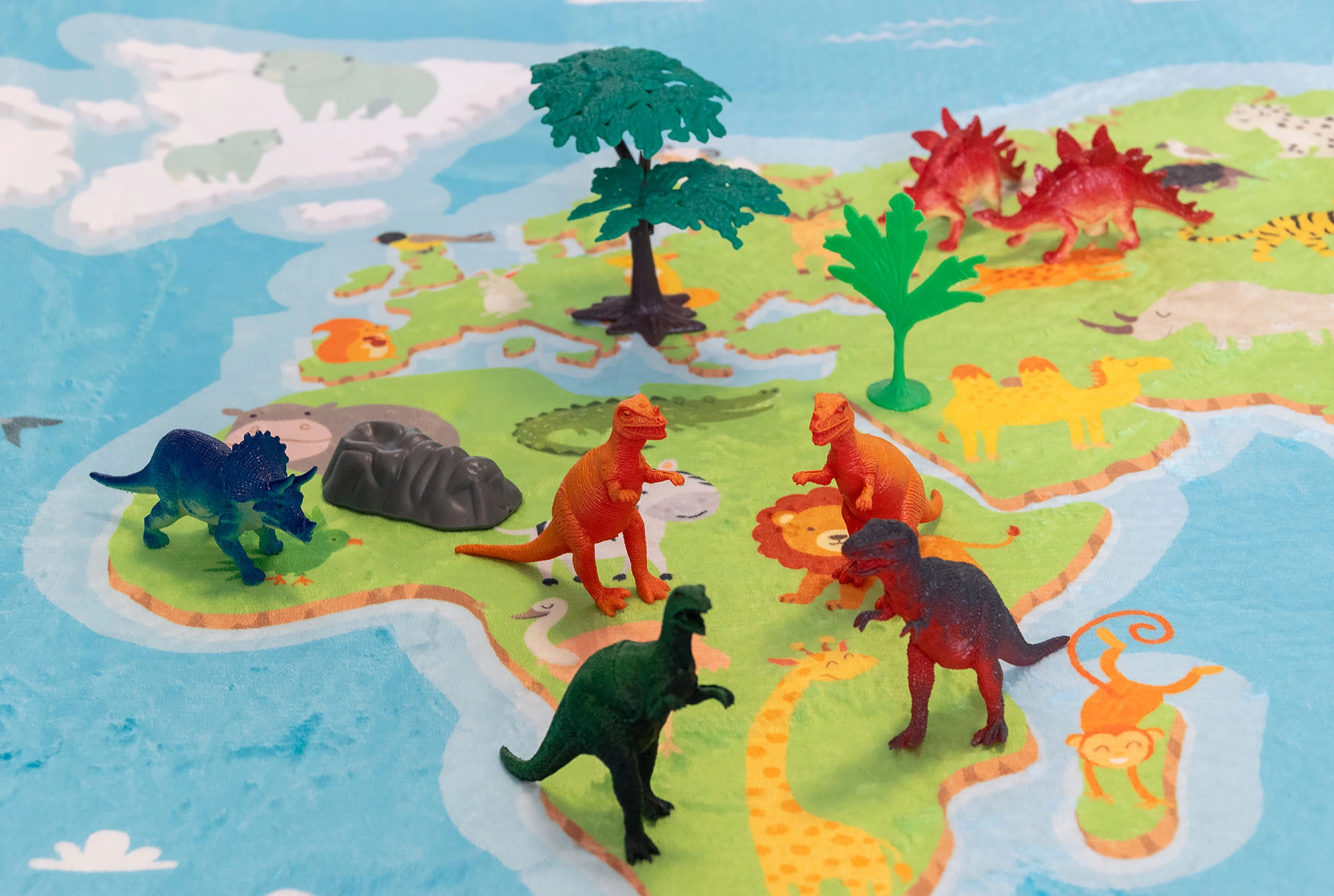 A dinoszauruszok, fák és kövek változatos kínálata lehetővé teszi a gyerekeknek, hogy saját őskori szcénákat alkossanak, fejlesztve a fantáziát és a kitartást a játékban.
