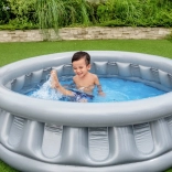 Az űrhajó formájú felfújható medence sok nyári szórakozást és kényelmes felfrissülést nyújt a gyerekeknek. A puha, felfújható aljnak és a kellemes falaknak köszönhetően, amelyek támaszként is szolgálnak, a vízben tartózkodás a legkisebbek számára is kényelmes. A medence könnyen felfújható és leereszthető, így a tárolás és a hordozás is gyerekjáték.