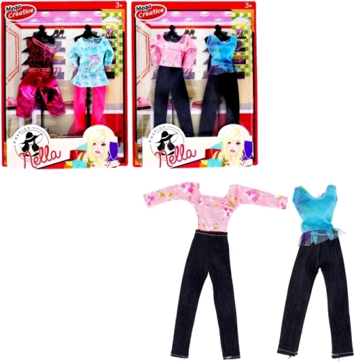 Stílusos babaruha-szett, amely örömet okoz az öltöztetésben és a fantáziadús játékban. A csomagban 2 teljes szett – top és nadrág – található, amelyek elegáns megjelenést kölcsönöznek a babáknak. Minőségi anyagból készült, elemet nem igényel, 3 éves kortól ajánlott.