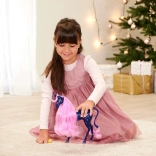 A csomagban elegáns arany hajkefe található, amellyel a sörény könnyedén kifésülhető és formázható. A figura minőségi anyagokból készült, feltűnő rózsaszín‑lila szemekkel rendelkezik, és stabilan megáll sík felületen – tökéletes játékhoz és dísznek a gyerekszobába.