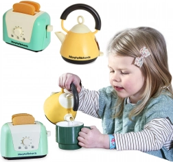 Stílusos gyerek konyhai készlet a CASDON-tól, a MORPHY RICHARDS készülékei által inspirálva, amely valósághű háztartási játékélményt nyújt. A csomag tartalmaz egy kenyérpirítót kiugró pirítós funkcióval és egy teáskannát kényelmes fogantyúval és mércével. A modern designnak, a könnyű kivitelnek és a biztonságos műanyag elemeknek köszönhetően ideális 3 éves kortól.