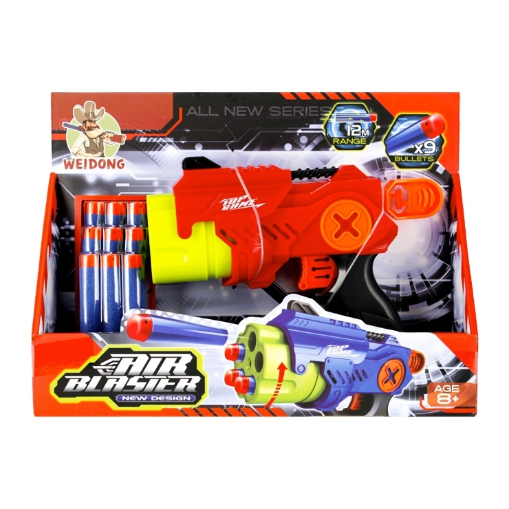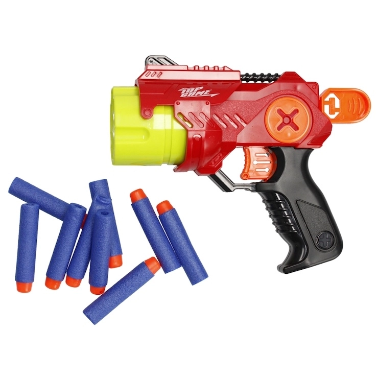 A csomag tartalma egy pisztoly és 9 habnyíl, ami tökéletes kezdőkészlet pontossági és gyorsasági versenyekhez is. Két vonzó szín közül választható – piros és kék. A játék 8 éves kortól ajánlott, és ablakos dobozban kerül csomagolásra, így ajándéknak is kiváló.
