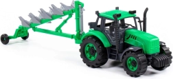 Ez a valósághű traktor pótkocsival és ekékkel rengeteg játékszcenáriót kínál a gyerekeknek – a szántóföldi munkától a műhelyszervizig. A inerciális (lendkerekes) hajtás javítja az áthaladást különböző felületeken, és hosszabb gurulást biztosít egyetlen lökéssel. A nyitható, rögzíthető motorháztetőnek köszönhetően a gyerekek utánozhatják a karbantartást, és fejleszthetik képzelőerejüket.