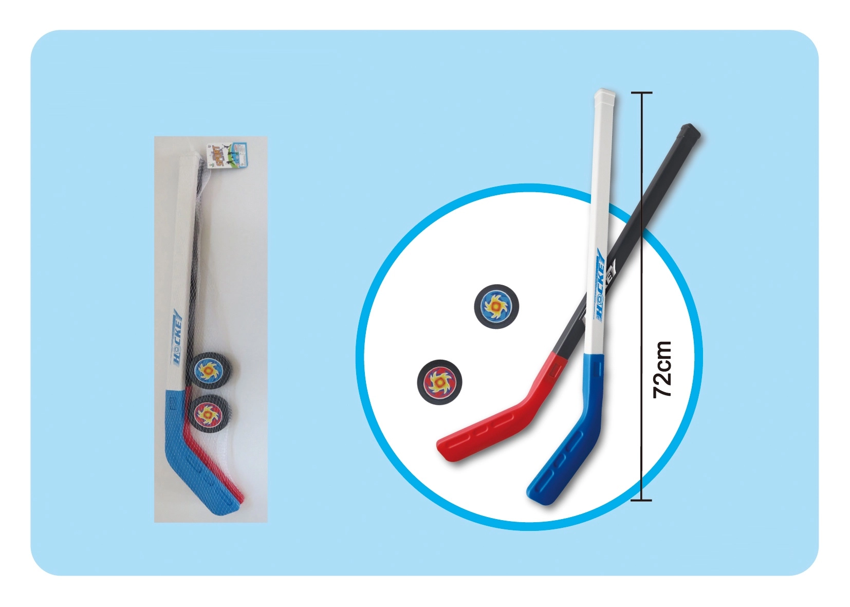 Fedezd fel az egyszerű és szórakoztató módját, hogy a gyerekeket megismertesd a jégkoronggal. Ez a kompakt jégkorong szett mindent tartalmaz a gyors játékhoz – két ütőt és két korongot, praktikus hálóban az egyszerű hordozhatóságért.