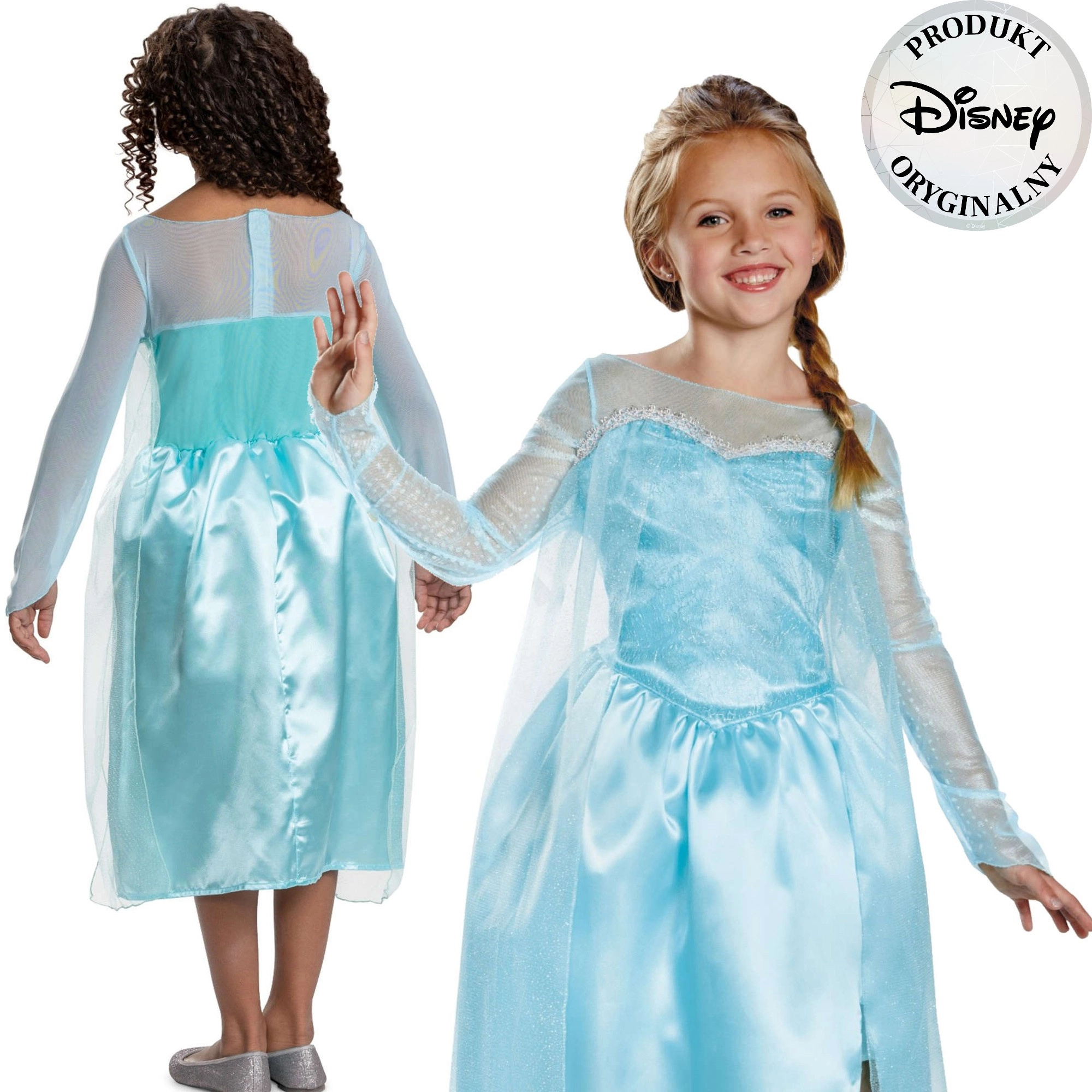 Elbűvölő gyerek ELSA jelmez a DISNEY FROZEN filmből, 109–123 cm (5–6 év) magasságra, amely minden kislányt jégkirálynővé varázsol. Könnyű, kényelmes és csillogó ruha áttetsző, hosszú ujjakkal és látványos palásttal/overlayjel halványkék és ezüst árnyalatokban – ideális farsangra, jelmezbálra és otthoni beöltözős játékokra.