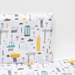 A NEW BABY ágyneműgarnitúra ideális választás újszülötteknek és kisgyermekeknek. A minőségi 100% pamut kellemes tapintású, jól elvezeti a nedvességet, és nem irritálja a bőrt. A város motívum mustár árnyalataival otthonossá varázsolja a kiságyat, és kellemes hangulatot teremt az elalváshoz.