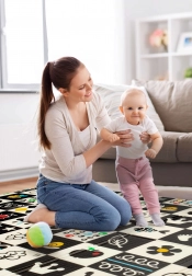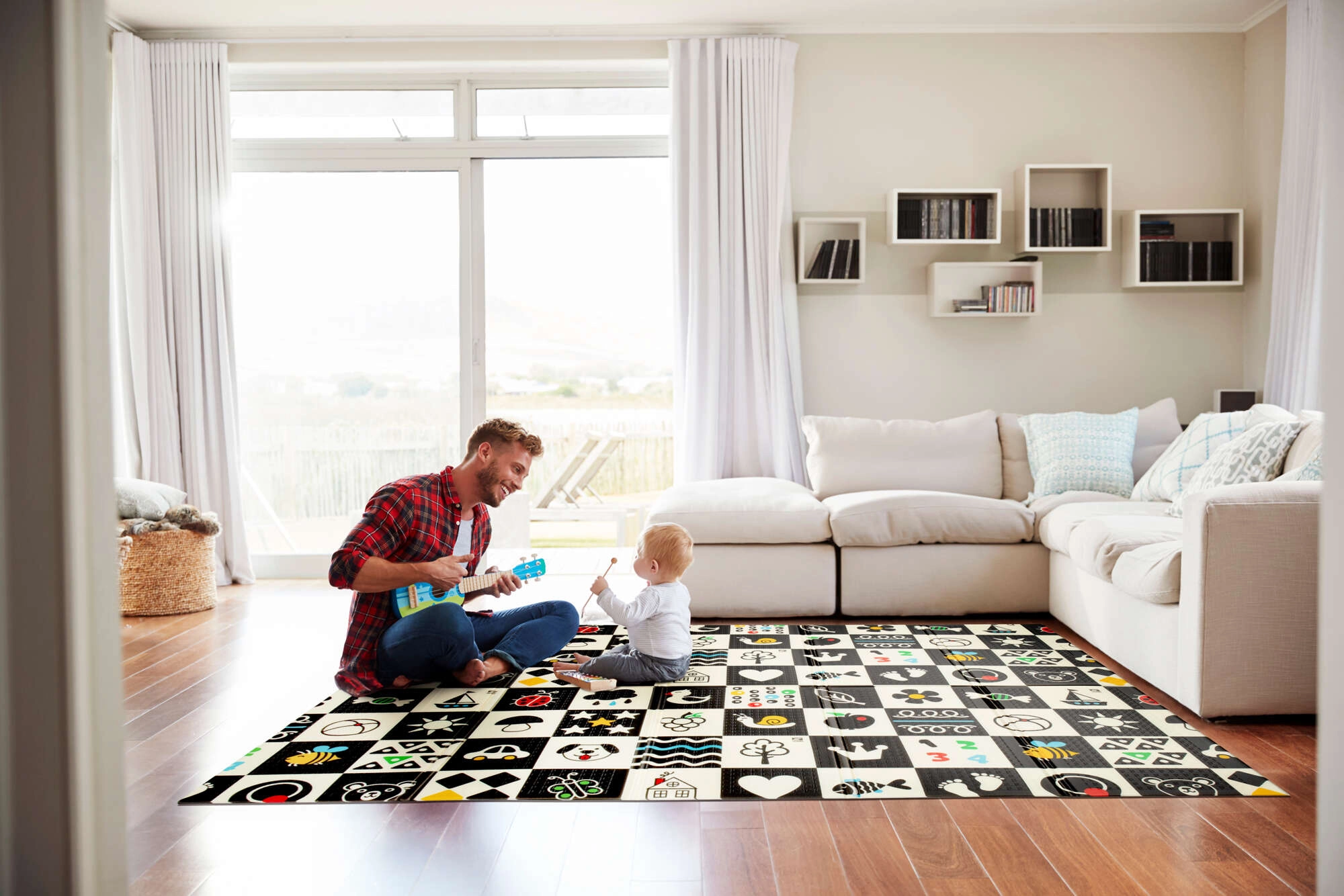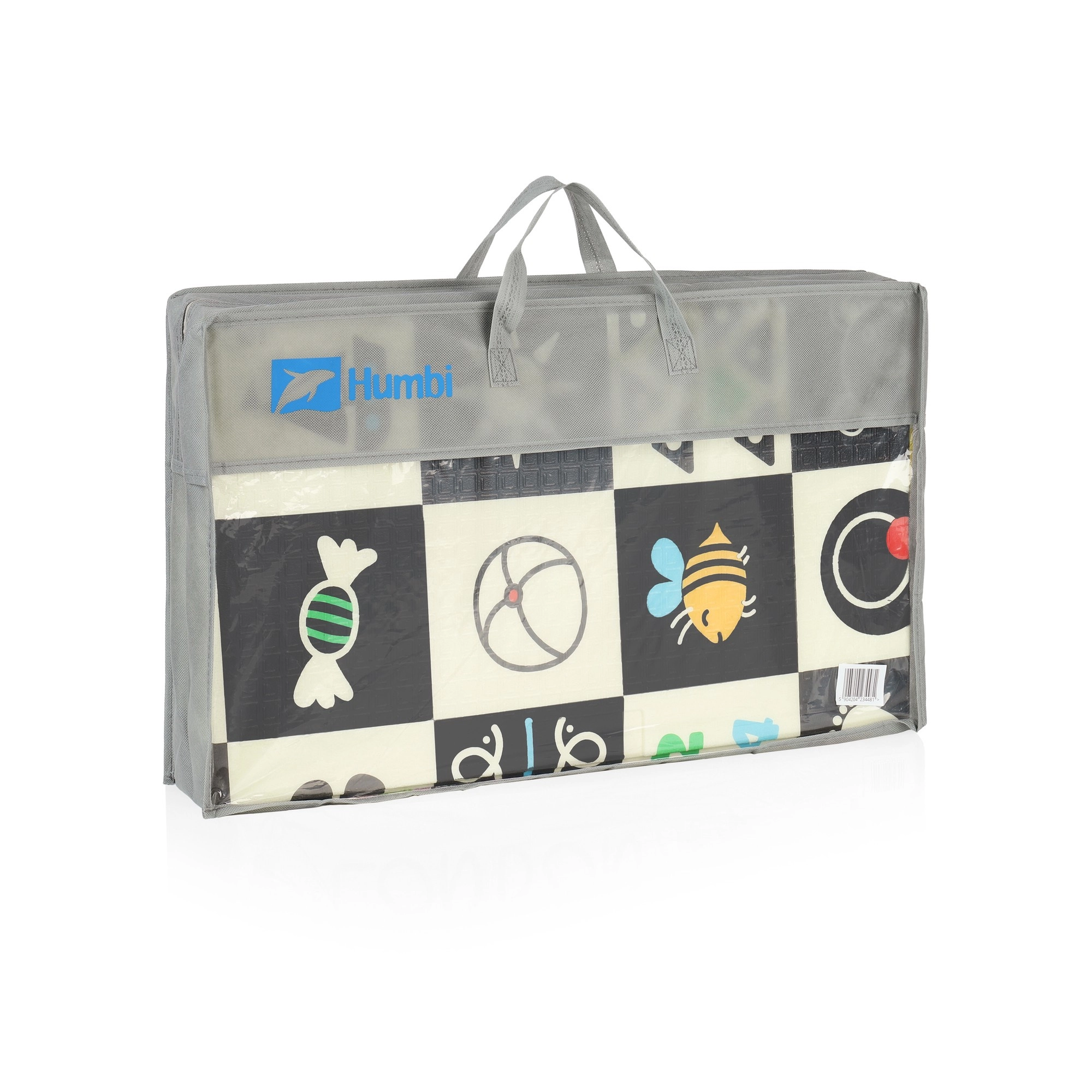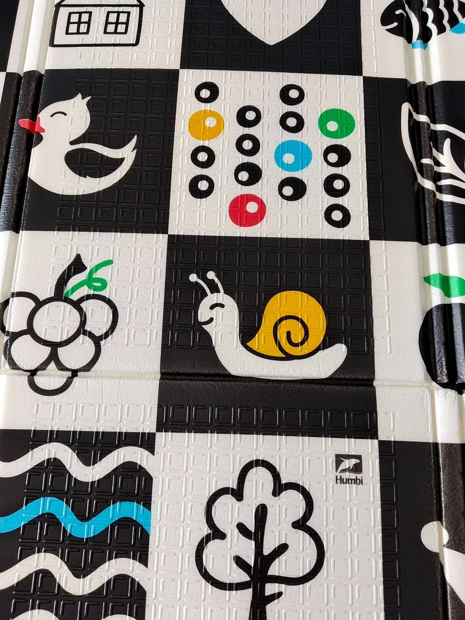 A HUMBI szőnyeg szagtalan XPE habból készült, kiváló ütéscsillapítást és hideg elleni szigetelést nyújt. Kellemesen puha, mégis tartós, és a csúszásgátló felületnek köszönhetően ideális a biztonságos kúszás és járás tanulásához. A kétoldalas nyomat ötvözi a kontrasztos motívumokat a vizuális stimulációért és a játékos ábécét az első ismerkedéshez.