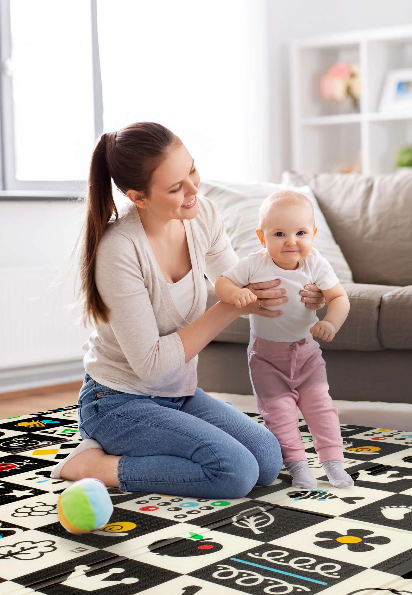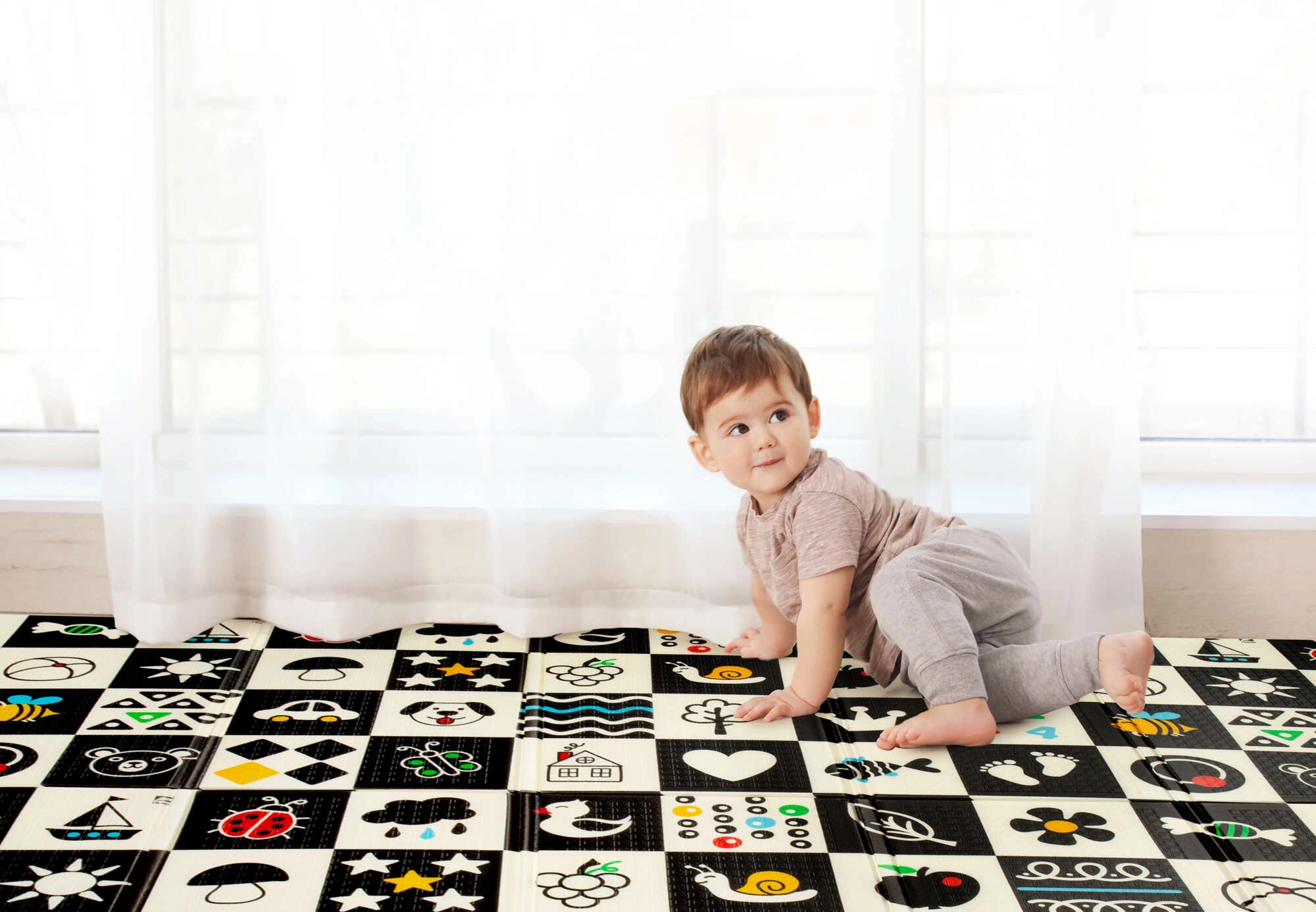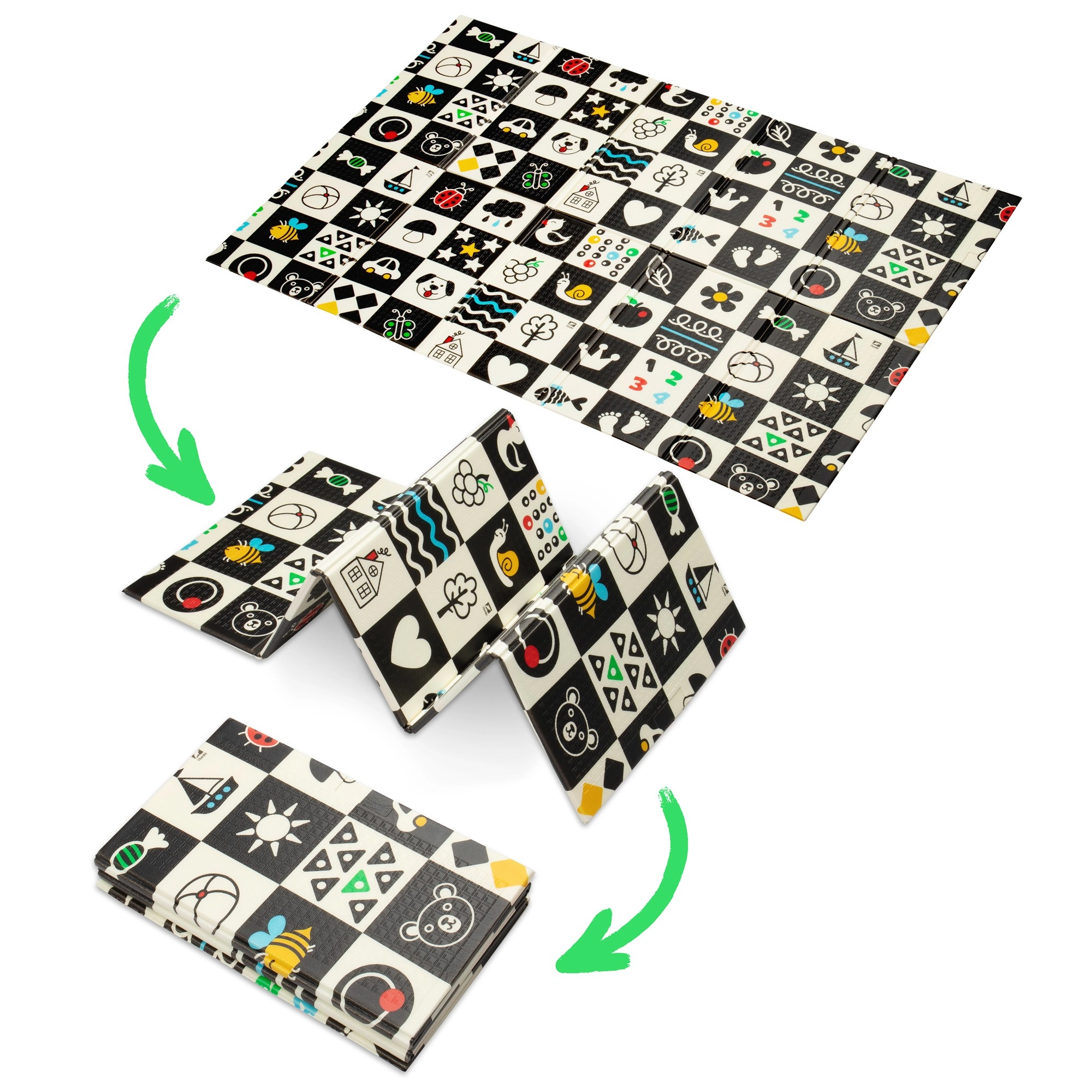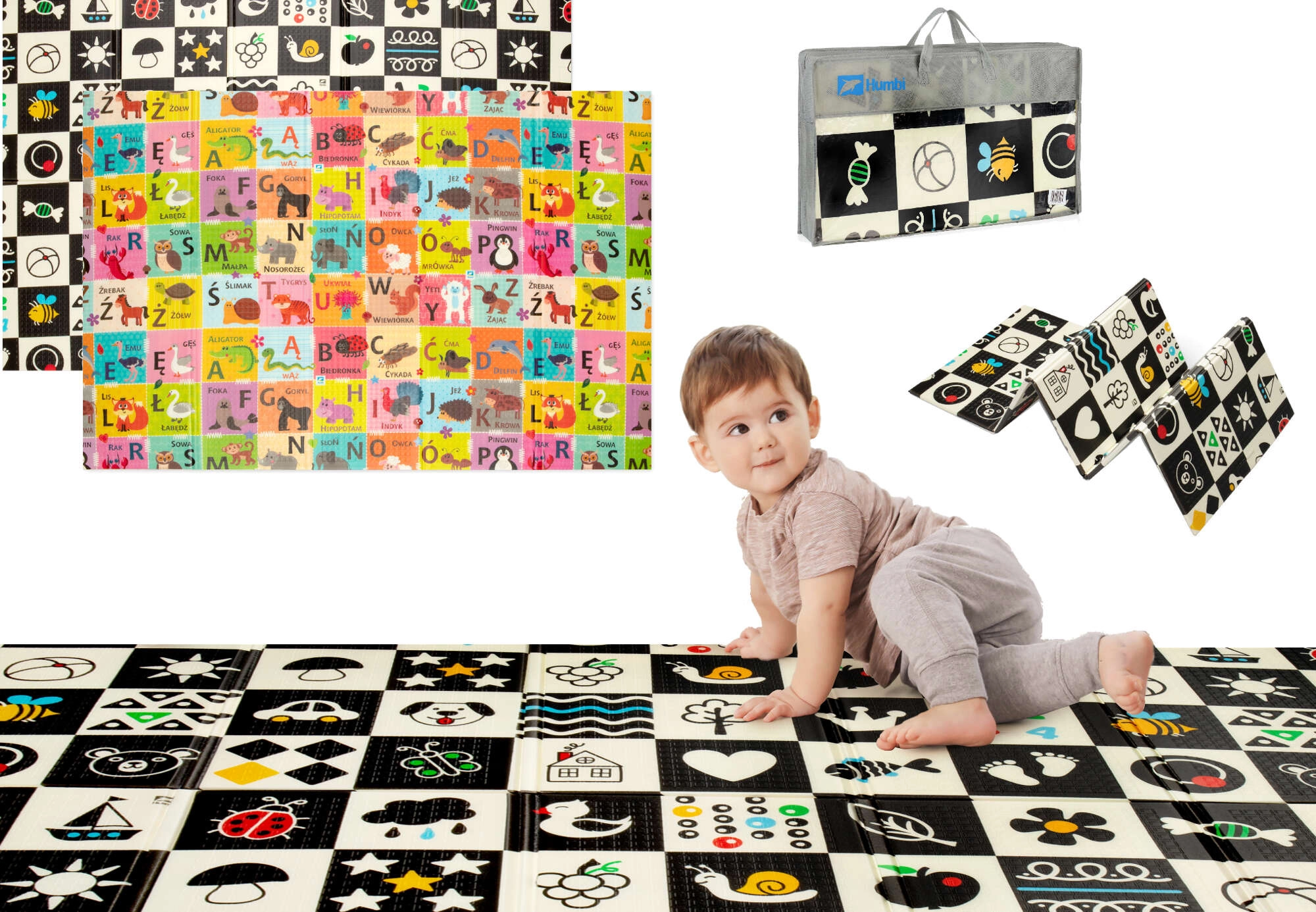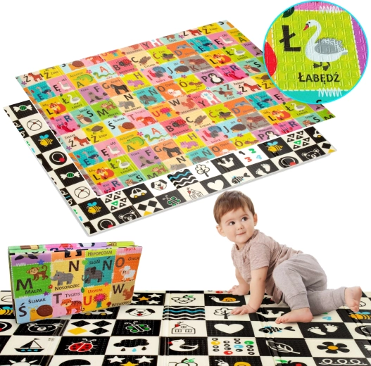 Nagy, puha és összecsukható szőnyeg prémium XPE habból, amely biztonságos és kényelmes helyet biztosít a babának játékhoz, hason fekvéshez és az első lépésekhez. Kétoldalas oktató grafikával (ábécé és kontrasztos ikonok), vízálló, könnyen tisztítható, és a mellékelt szállítótáskának köszönhetően magával viheti a nappaliba, a gyerekszobába vagy a kertbe.