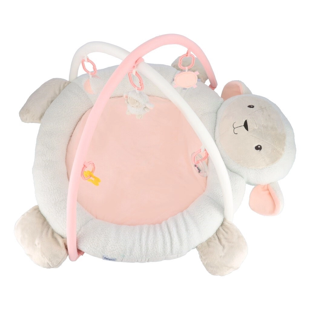 A vastagon párnázott, selymesen puha, bárány alakú szőnyeg kényelmet nyújt háton és hason fekve is, ideális a tummy time gyakorlásához.