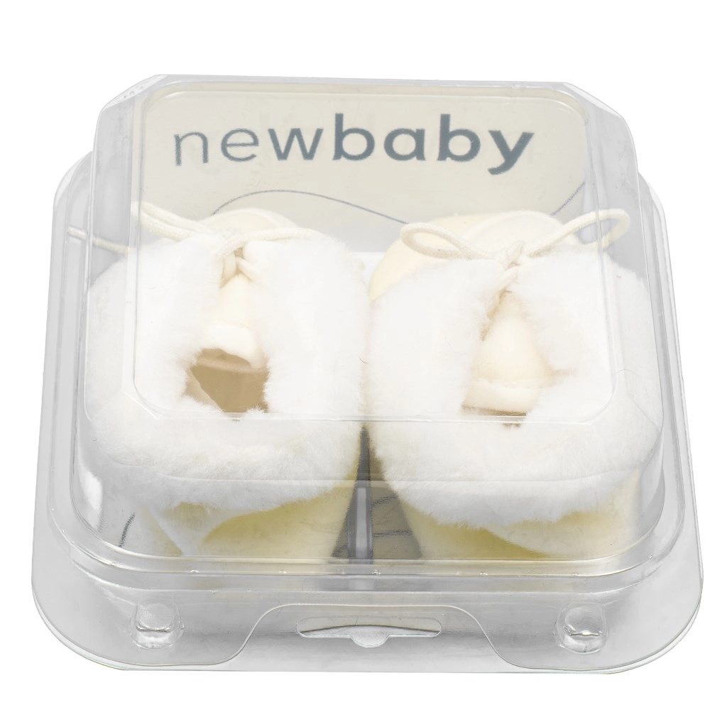 Anatómiailag kényelmes forma tágas belső térrel a lábujjak és izmok természetes, szabad mozgásának támogatására. A vékony szintetikus talp könnyű és rugalmas – a cipők nem járásra szolgálnak, hanem kényelmes otthoni és babakocsis viselésre. A 10 cm belső talphossz 0–3 hónapos babáknak ideális.