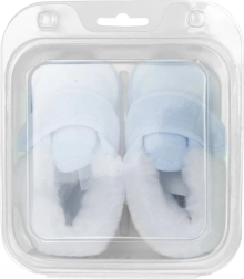 A széles tépőzáras rögzítőpántoknak köszönhetően a cipőcskék könnyen feladhatók és stabilan a lábon maradnak. A tágasabb belső tér támogatja a láb egészséges fejlődését és a szabad izommozgást. A cipőcskék nem járásra valók; tökéletesek babakocsiba, hordozóba vagy otthonra.