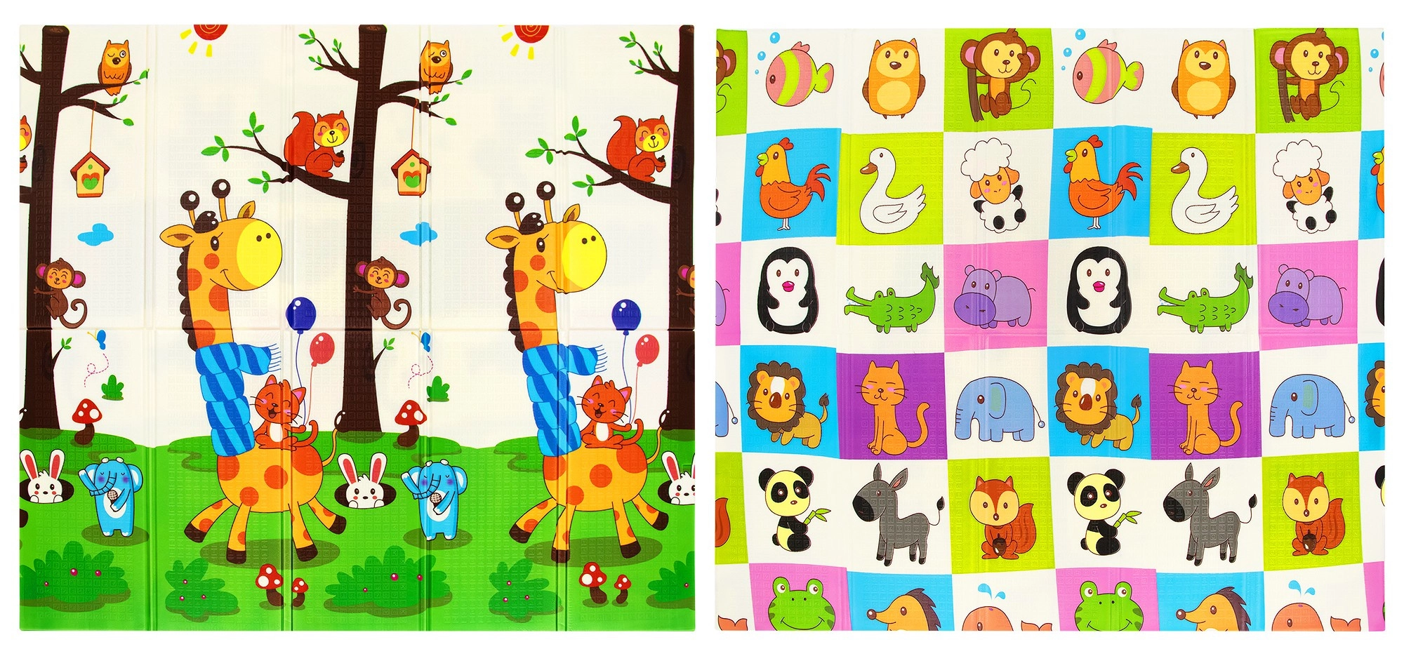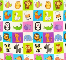 Az egyik oldalon bájos zsiráfok, a másikon színes állatmozaik. Fejleszti a vizuális észlelést és játékos megjelenést kölcsönöz a belső térnek.