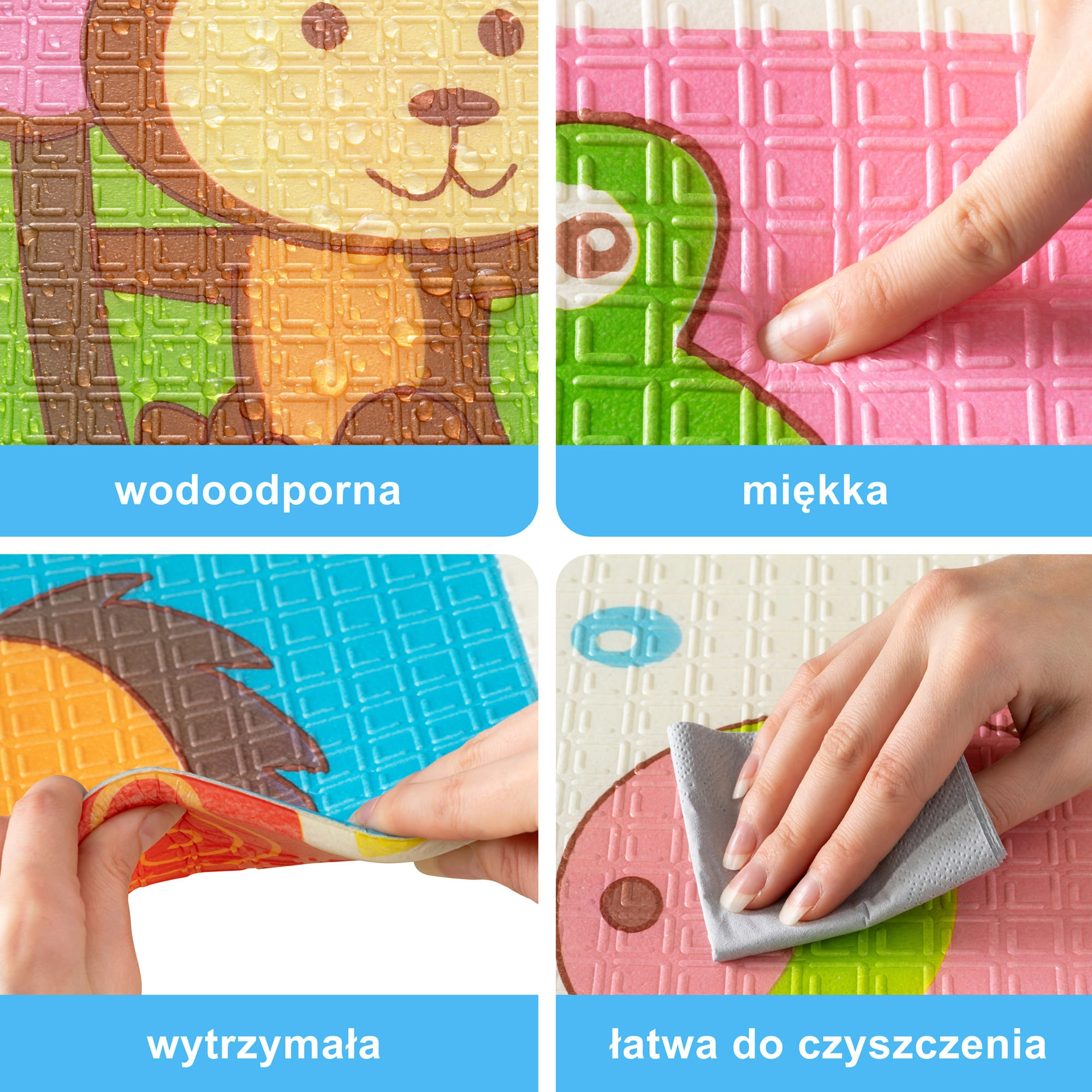 A vastag és rugalmas XPE hab kiválóan tompítja az eséseket, hőszigetel a hideg padlótól, szagmentes és káros anyagoktól mentes. Ideális újszülötteknek is az első napoktól.