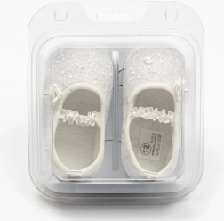 A talp vékony, BPA-mentes PVC szintetikus anyagból készült, így a cipőcskék nagyon könnyűek, és beltéri viselésre vagy babakocsiban ideálisak. A termék nem járásra készült, viszont kiválóan melegíti és védi a baba lábát. Praktikus dobozban szállítva, ajándéknak is remek.