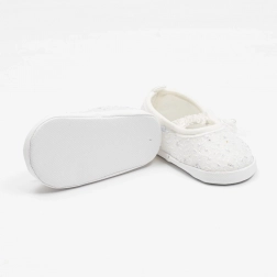 A NEW BABY csipkés balerinák finom megjelenésükkel és kényelmes szabásukkal örömet okoznak a kis hercegnőknek. Puha kialakításuknak köszönhetően jól illeszkednek a lábfejre, ugyanakkor elegendő helyet biztosítanak a lábujjak természetes mozgásához és az izmok fejlődéséhez. A bézs szín könnyen kombinálható hétköznapi és ünnepi szettekkel is.