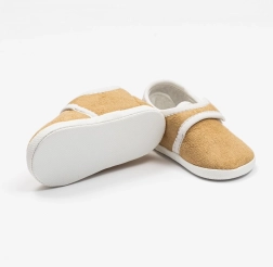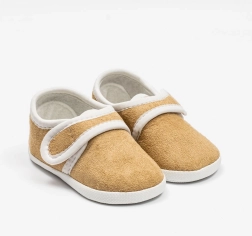 Stílusos és funkcionális New Baby cipőcskék barna színben, újszülöttek kényelmére tervezve. A praktikus tépőzáras záródás megkönnyíti a fel- és levételt, a cipőcskék jól illeszkednek a lábra, és a tágas belső térnek köszönhetően nem szorítják a lábujjakat vagy az izmokat.