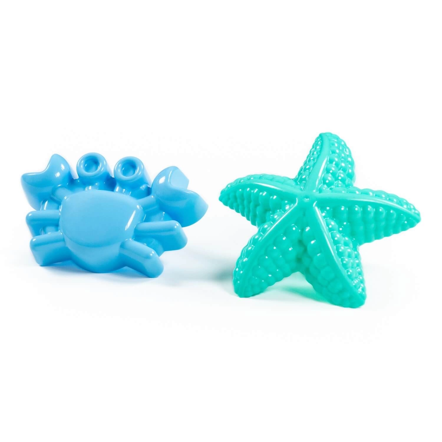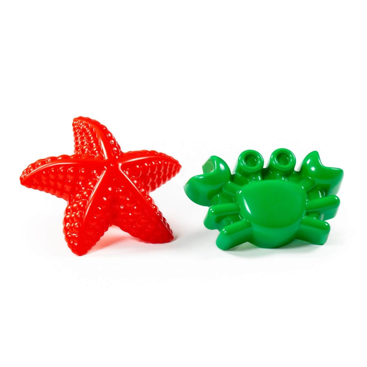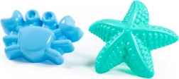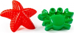 A készlet két praktikus, tengeri motívumú formát tartalmaz (pl. tengeri csillag és rák), amelyeket a gyerekek könnyen a homokba nyomhatnak, így szép alakzatokat készíthetnek. Az anyag könnyen tisztítható, és alkalmas szabadtéri és otthoni, vízben való játékra is.