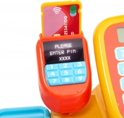 A kézi szkenner rövid pittyenést ad ki az „áru leolvasásakor”, a kártyaolvasó pedig a kártyás fizetést szimulálja. A gyerekek kipróbálhatják a boltban leggyakoribb fizetési módokat.
