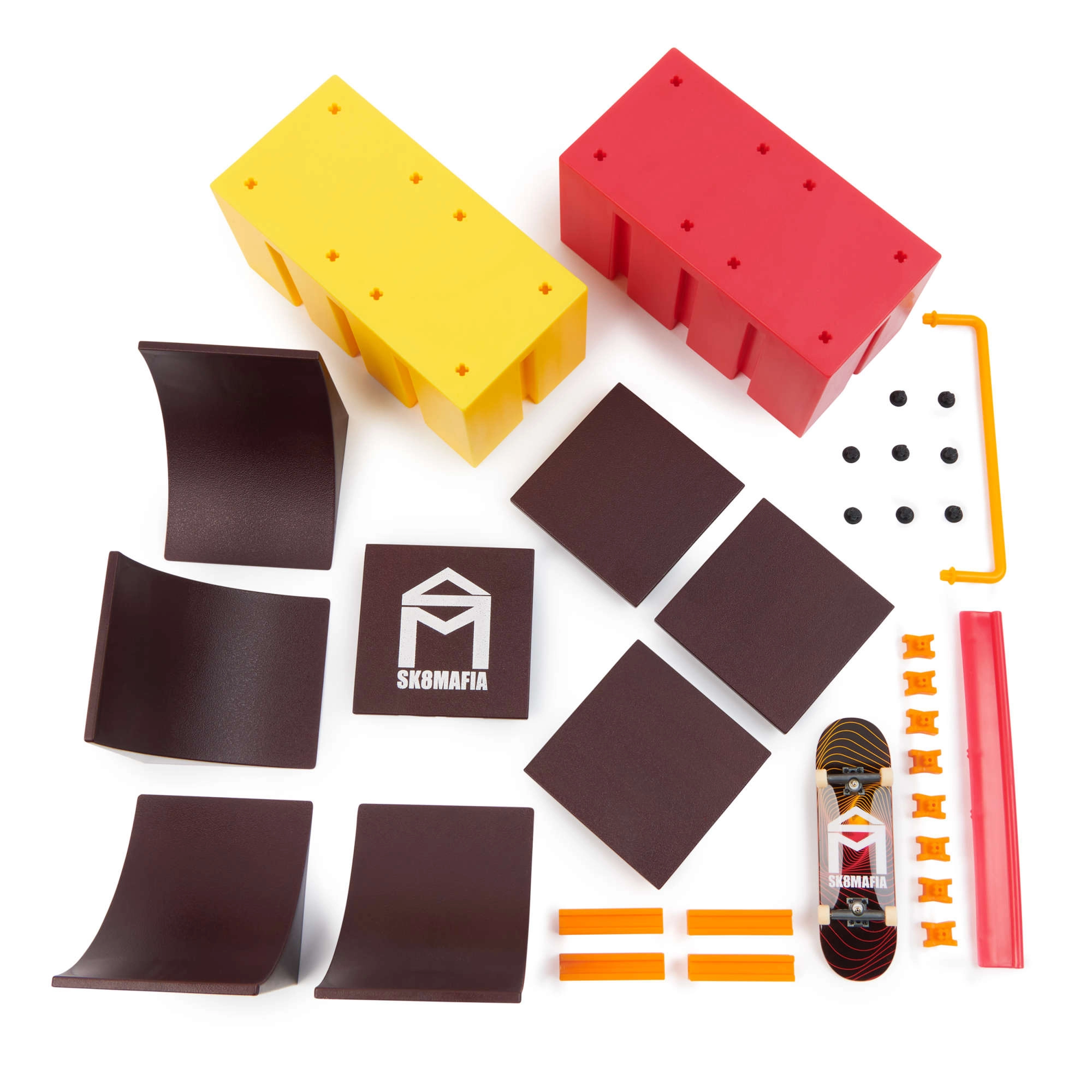 A Tech Deck Vert Wall 2.0 SK8MAFIA skatepark szett kezdőknek és haladóknak egyaránt ideális. A moduláris X-Connect felépítésnek köszönhetően könnyedén összekapcsolhatod a különböző rámpákat és akadályokat, és egyedi konfigurációkat hozhatsz létre ugrásokhoz, grindokhoz és manualokhoz. A csomag része egy gyűjtői fingerboard részletgazdag grip felülettel és nyomattal, amely kiválóan tapad az ujjak alatt.