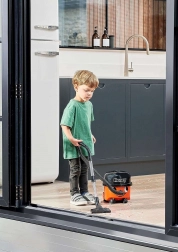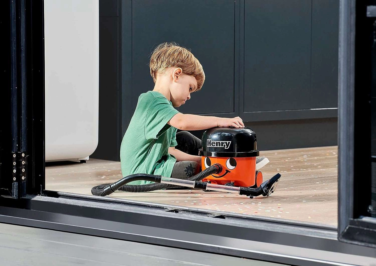 A közkedvelt HENRY gyerek változata a takarítást mókává varázsolja. Valósághű dizájn mosolygós arccal, négy kerékkel és átlátszó csővel elragadja a kis segítőket. A porszívó valóban felszív apró és könnyű szennyeződéseket (pl. konfetti vagy polisztirol golyócskák), miközben kíméletes és biztonságos már 3 éves kortól.