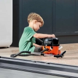 A nyitható fedélnek és a kivehető tartálynak köszönhetően könnyen tisztítható, míg a hátsó oldali tartók rendezetten tartják a tartozékokat. A csendes működés kíméli a gyermekek hallását, a praktikus fogantyú pedig megkönnyíti a szobák közötti hordozást.