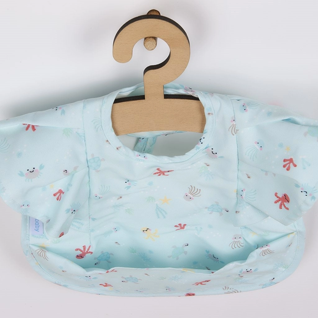 A praktikus és elegáns, fodros New Baby előke megbízhatóan megvédi gyermeke ruháját étkezés és játék közben is. Könnyű, kellemes tapintású anyagból készült, kényelmes tépőzáras záródással, praktikus zsebbel és vízálló alsó réteggel, a maximális védelemért és a könnyű tisztításért.